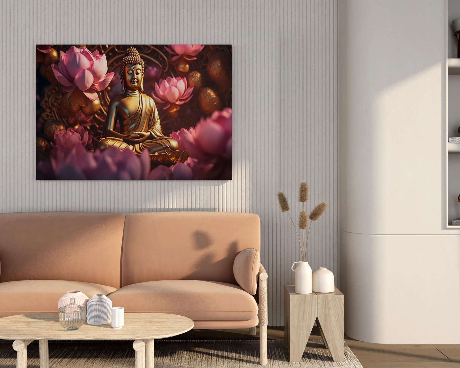 Transform your space into a sanctuary of tranquility with our exquisite Buddha wall paintings. Crafted with meticulous detail and imbued with spiritual serenity, each piece radiates peace and harmony. Elevate your home decor with these timeless artworks, perfect for creating a serene ambiance in any room. Explore our collection and invite the essence of enlightenment into your living space today The canvas is carefully stretched over a durable wooden frame, creating a gallery-quality finish that adds a touch of elegance to any room. Whether you’re looking for a Buddha framed painting for wall or a Buddha big wall painting with frame