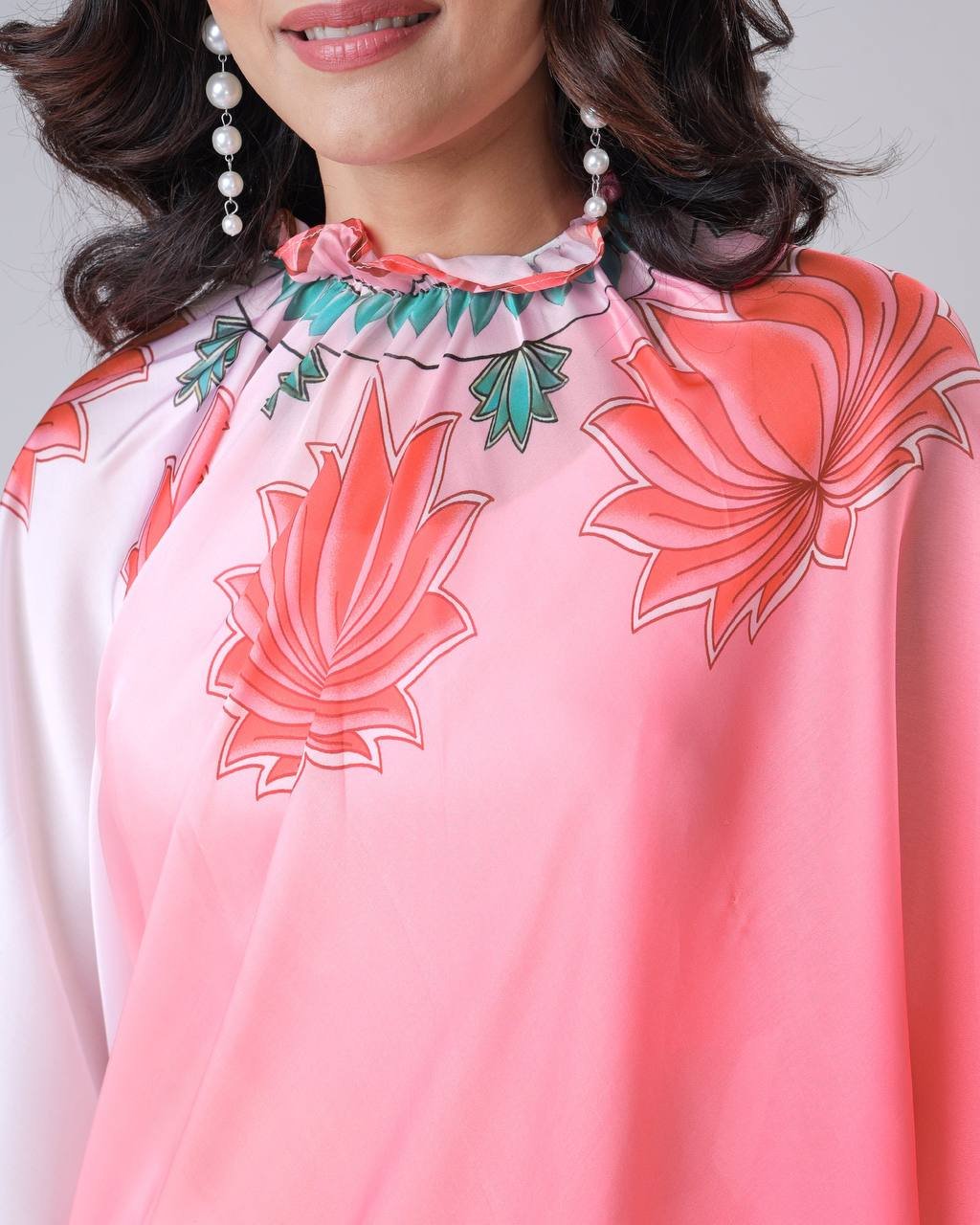 Nice Creation launches the NC-5423 ready-to-wear kaftan style saree in heavy crepe silk with beautiful print. Only ₹3,499.00.